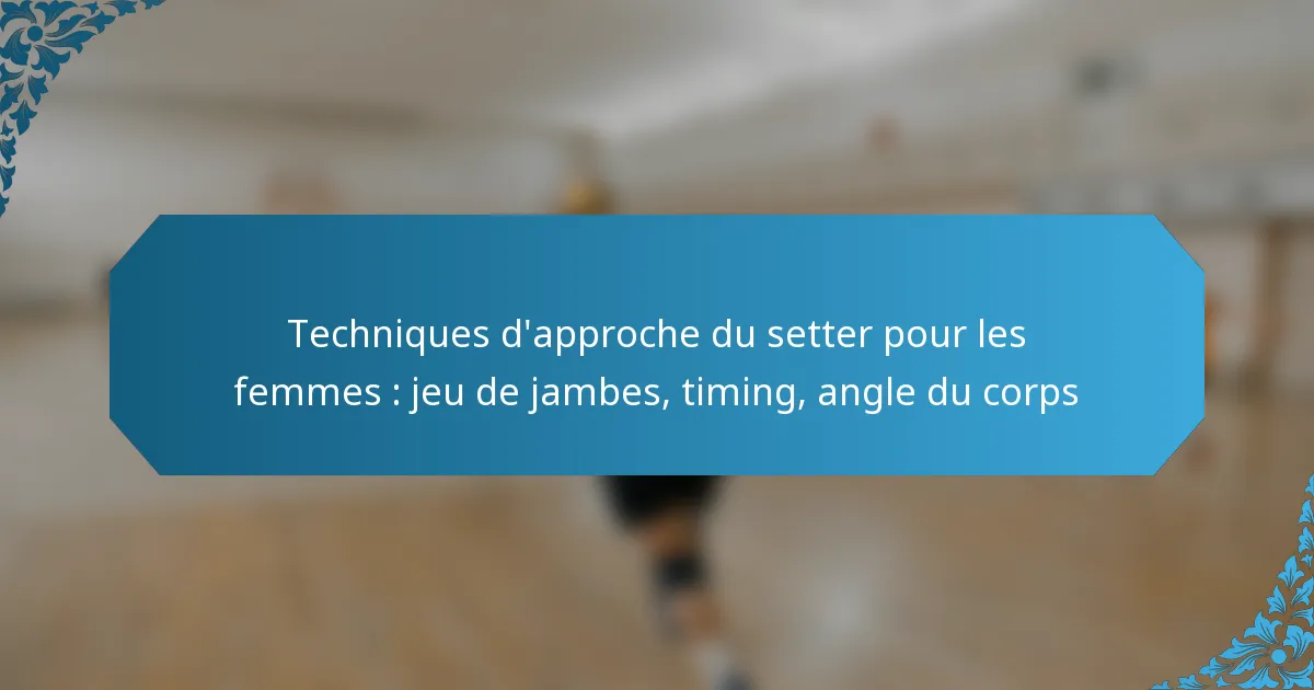 Les techniques d’approche des passeuses pour les femmes en volleyball se concentrent sur trois éléments clés : le travail des pieds, le timing et l’angle du corps. Maîtriser un bon travail des pieds permet aux passeuses de se positionner efficacement et de s’ajuster à la trajectoire de la balle, tandis qu’un timing précis assure la…