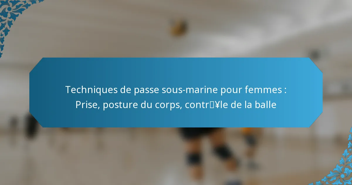 Techniques de passe sous-marine pour femmes : Prise, posture du corps, contrôle de la balle